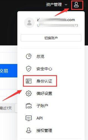3.新用户注册后,先验证身份(KYC验证)才可进行交易,点击用户中心--身份认证,进行身份认证