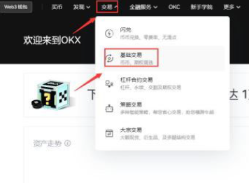 4.登陆OKX账号,在首页点击交易--基础交易,进入交易页面