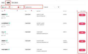 7、选择【出售】,选择【USDT】,选择【CNY】,选择【支付方式】,选择合适的买家进行出售,就完成人民币兑换