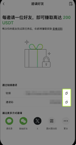 邀请朋友使用你的邀请码注册 OKX 账户,您可以获得盲盒奖励: