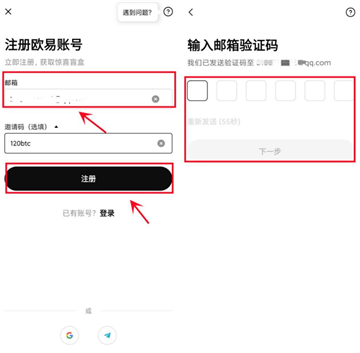 1、点击此处即可打开欧易官网,下载OKX APP后在首页点击“注册/登录”点击“立即注册”,输入邮箱地址,点击“注册”,然后输入邮箱收到的六位数字验证码,有效时间为10分钟