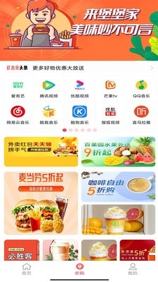 2、在首页可以看到各大影视会员以及软件的优惠信息。