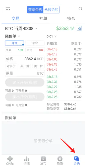 2.登录进入以下合约交易界面。