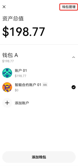 在钱包首页点击钱包 ▼ > 钱包管理 > 编辑钱包···,对于 1 个无私钥钱包或 1 个私钥钱包创建的 AA 智能合约账户,可以点击页面底部的 删除钱包 > 输入钱包密码 > 确认删除。