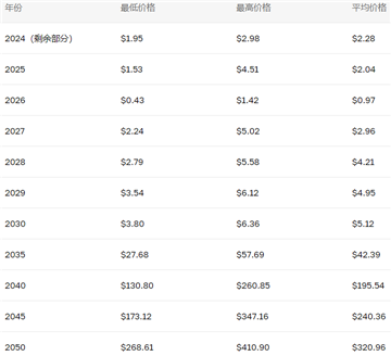 让我们来看看Ripple的价值在未来25年可能如何变化,这将有助于了解其价格潜力。下表展示了我们的短期预测。