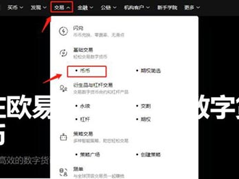 3、点击上方导航栏的【交易】【币币】。