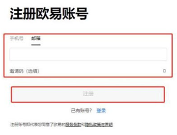 1、在欧易交易所首页点击【注册】进入注册欧易账号页面,选择【手机号】,输入手机号,点击【注册】即可。
