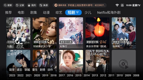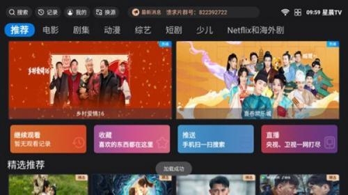 1、首页推荐与智能搜索定位打开星晨TV后,首页智能推荐15+个热门影视分类(如"热播剧集"、"新片速递"),支持关键词搜索(输入"甄嬛传"自动关联《甄嬛传》全集)。点击任意推荐条目或使用顶部搜索框输入名称,系统3秒内返回精准结果,并显示节目简介、评分及更新状态,助您快速锁定目标内容。