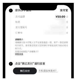 3)根据卖家提供的收款方式(银行卡/微信/支付宝),打开对应的第三方支付平台完成转账。转账完成后请务必回到交易页面点击【我已支付】,卖家才可以给您放币。新手用户买币成交<3单时,点击【已支付】后,页面将出现弹窗,需要您上传付款证明。您购买的资产,可在【资产】-【资金账户】中查看。