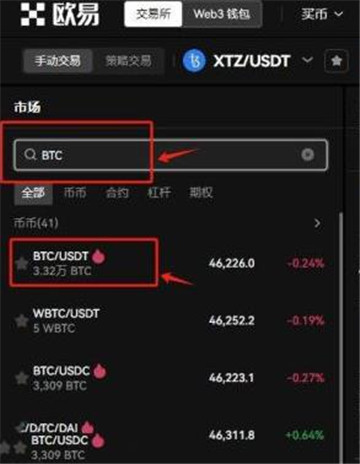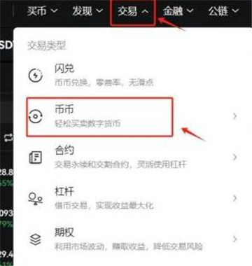 进入【交易】页面,—点击左上角币对框。