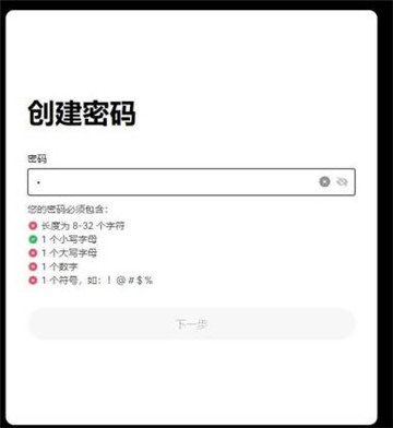 4、创建密码需要符合长度为 8-32 个字符、1 个小写字母、1 个大写字母、1 个数字、1 个符号,如:!@ # $ %等条件
