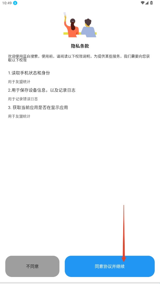 1、在本站下载好“蓝白搜索”点击同意使用权限