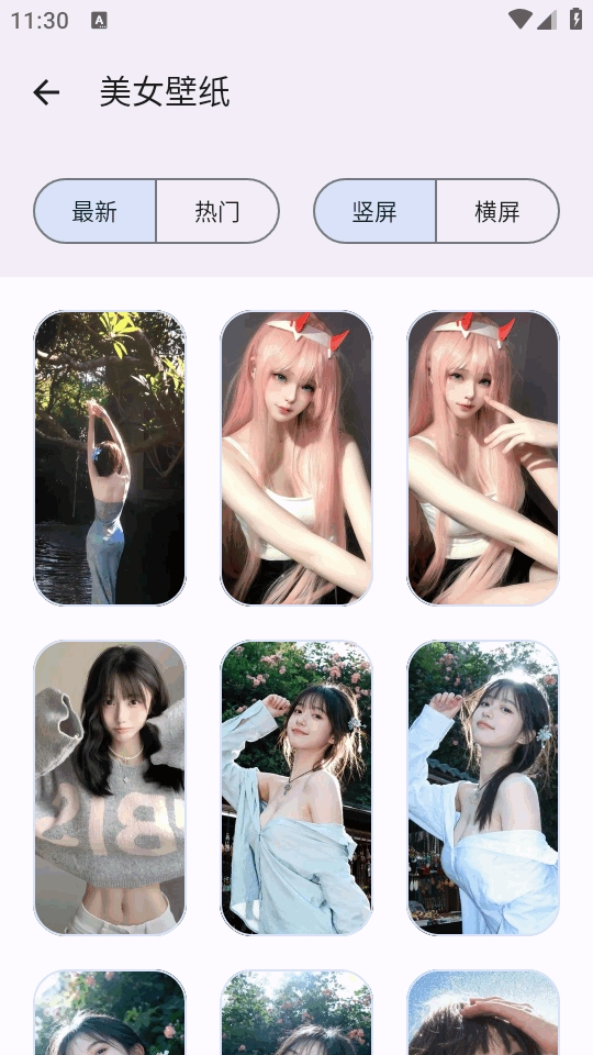 5、点开后可以看到有最新,热门及竖屏和横屏图片。