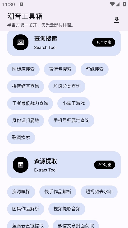 潮音工具箱app是一款多功能的手机工具箱软件,内置强大的搜索引擎和超多实用小工具,可以在潮音工具箱app上免费使用各种工具,各项工具一目了然,操作直观便捷,需要的快来下载吧!