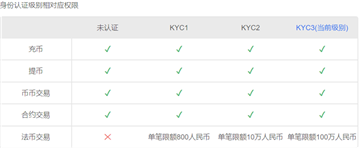 此外,还有基于验证级别的交易限制。未经验证的帐户仅限于2,000美元的单笔交易。此限制增加到1级单笔交易10,000美元,级别2单笔交易200,000美元,3级单笔交易500美元。
