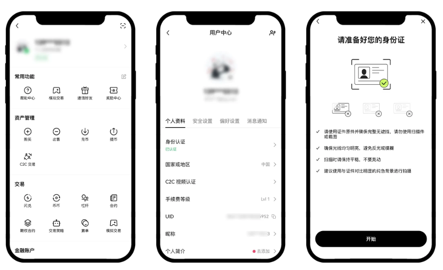 1)打开欧意 App,点击首页左上角用户中心图标—点击上方昵称/账号—【身份认证】,点击【立即认证】,进入身份认证页面。您需要上传证件照,如身份证的正反面,并通过人脸识别,根据页面提示完成证件上传和身份认证。
