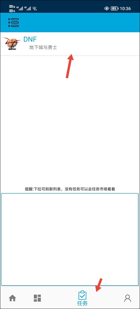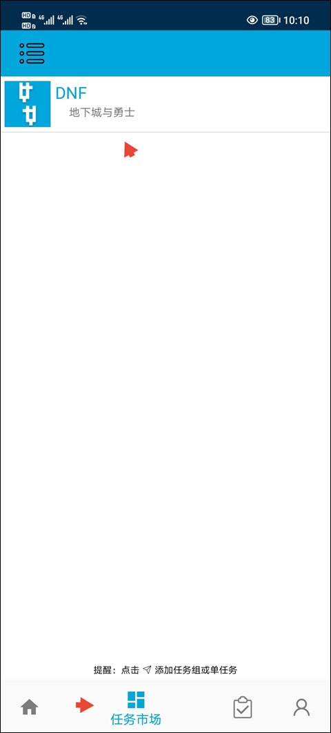 3、登录完成之后,找到任务市场点击,再点击dnf。