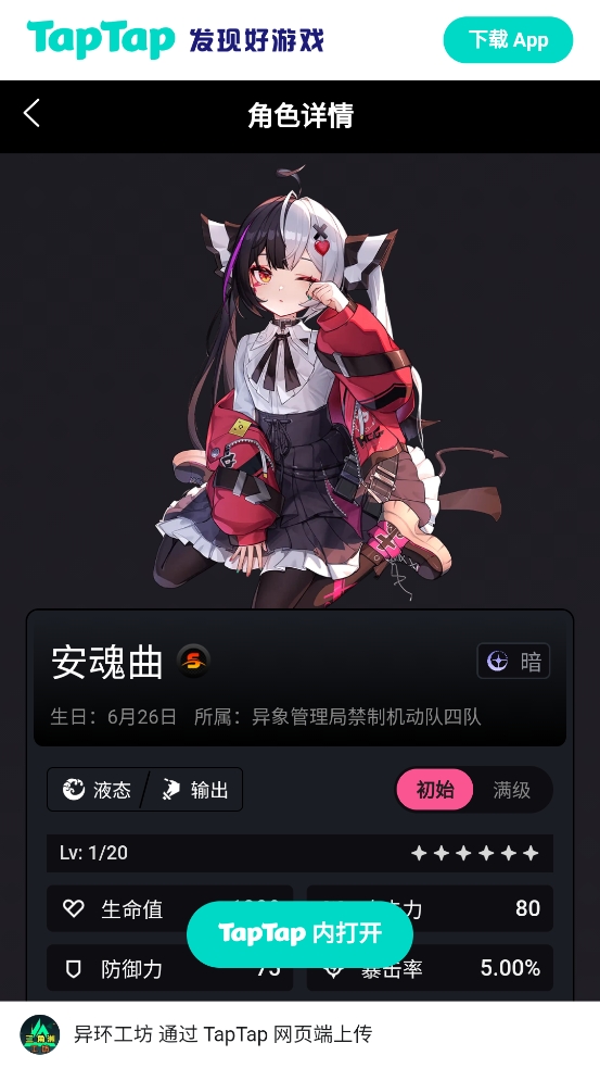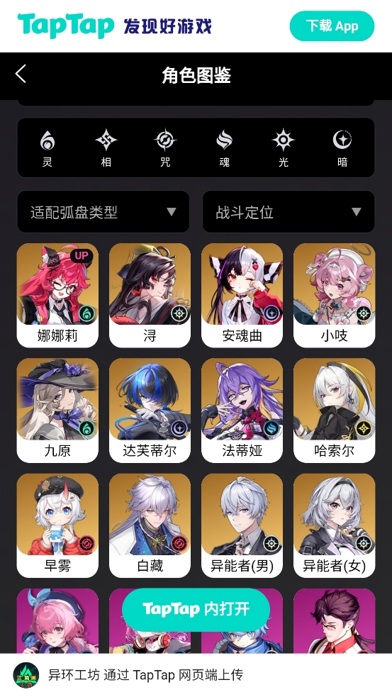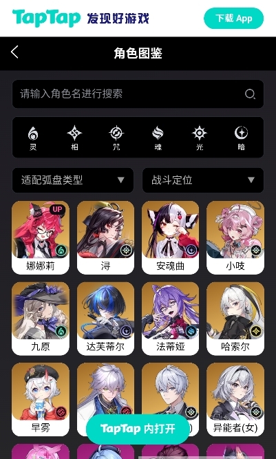 1.打开软件进入首页,可以浏览完整的角色图鉴内容。