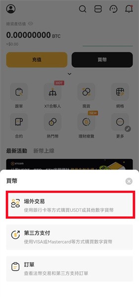 1、在您的迪普洛主页找到“买币”,选择【场外交易】。