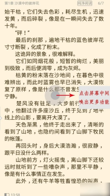 4、左右滑动翻页,轻触屏幕中部调出更多功能,可开启自动滚屏或听书模式。