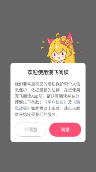 1、打开下载好的app,点击进入软件,点击同意用户协议和隐私政策。