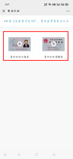 3、然后需要提交身份证的正反面、以及录入人脸就可以成功完成快递员的实名认证;