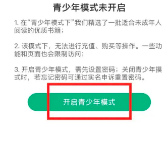 进入界面,点击‘开启青少年模式’即可完成。