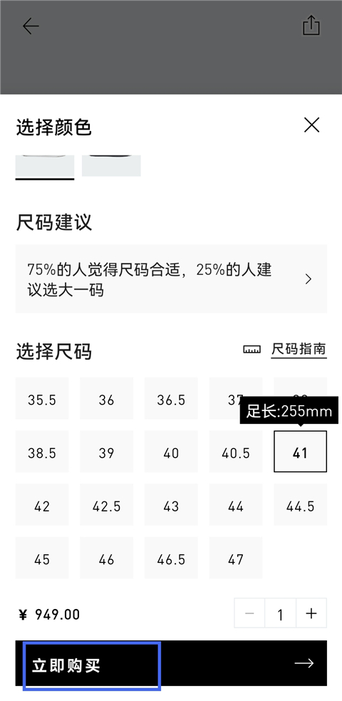 4、选择商品的颜色、尺码等信息,点击【立即购买】。