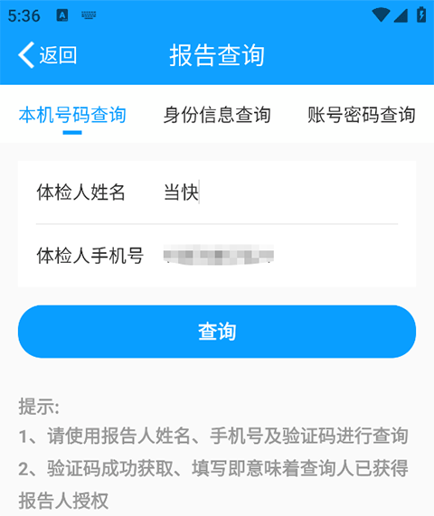 3、使用本机号码/身份信息/账号密码查询,点击下方查询即可。