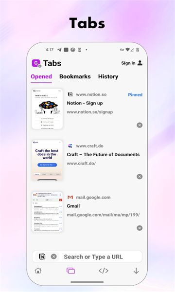 2、标签:除了书签,喜欢和浏览记录,Stay浏览器支持了固定标签, 你可以像在桌面浏览器一样,把你最常用的标签固定。