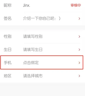 3、在编辑个人信息的界面中,点击手机。