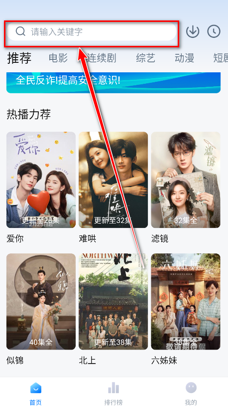 1.打开大师兄影视,点击首页上方的搜素框。