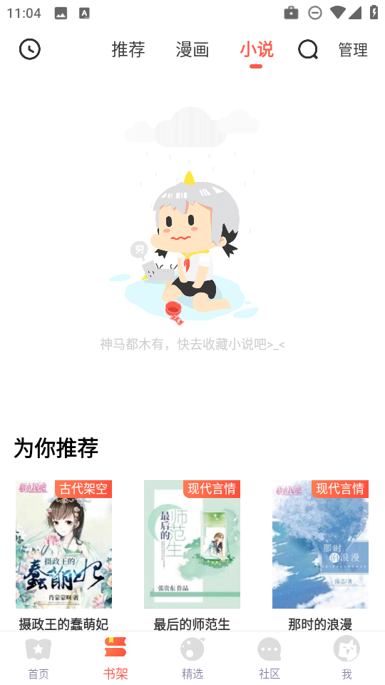 3、点击上方“漫画”或“小说”栏目,挑选喜欢的作品。