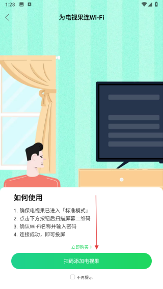 4、在为电视果连Wi-Fi页面,点击扫码添加电视果按钮,按照提示扫描屏幕二维码。