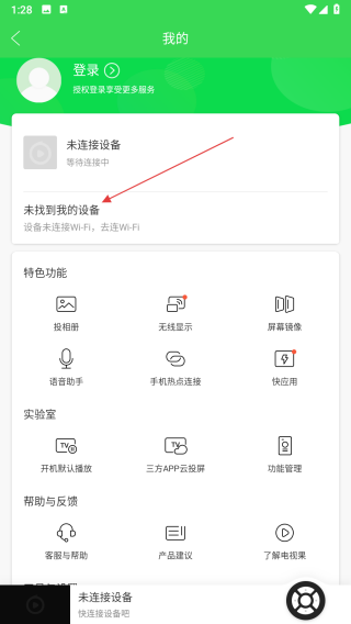 2、在个人页面中,点击未找到我的设备选项,进入未找到设备的设置页面。