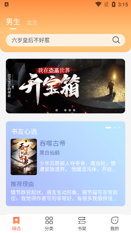 为了用户可以非常快速的找见自己喜欢的小说,页面也设置非常清楚的页面分类,方便用户使用。