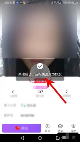 点击后系统打开提示弹窗,提示“关注成功,互相关注成为好友”。