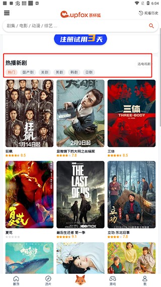 1、下载并安装茶杯狐,完成后打开软件,每天随时会大家推荐热播新剧