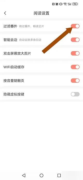 3、触碰过滤番外小按钮开启,即可解锁系统原文畅读模式。