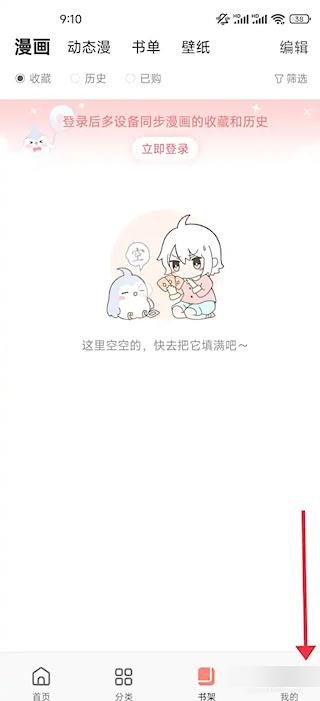 1、打开飒漫画,点击底部导航栏的我的按钮。