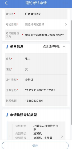 4.点选后,除考试日期外,其他信息均被带入到录入表中,如下图所示:
